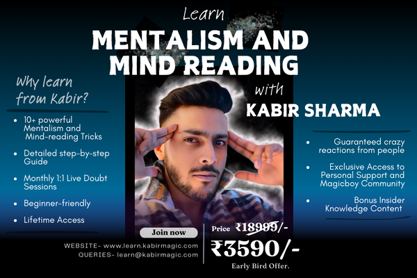 Taught by India's #1 Mentalist, Kabir Sharma, this course will unlock your potential and elevate your magic skills to the next level. 🔥